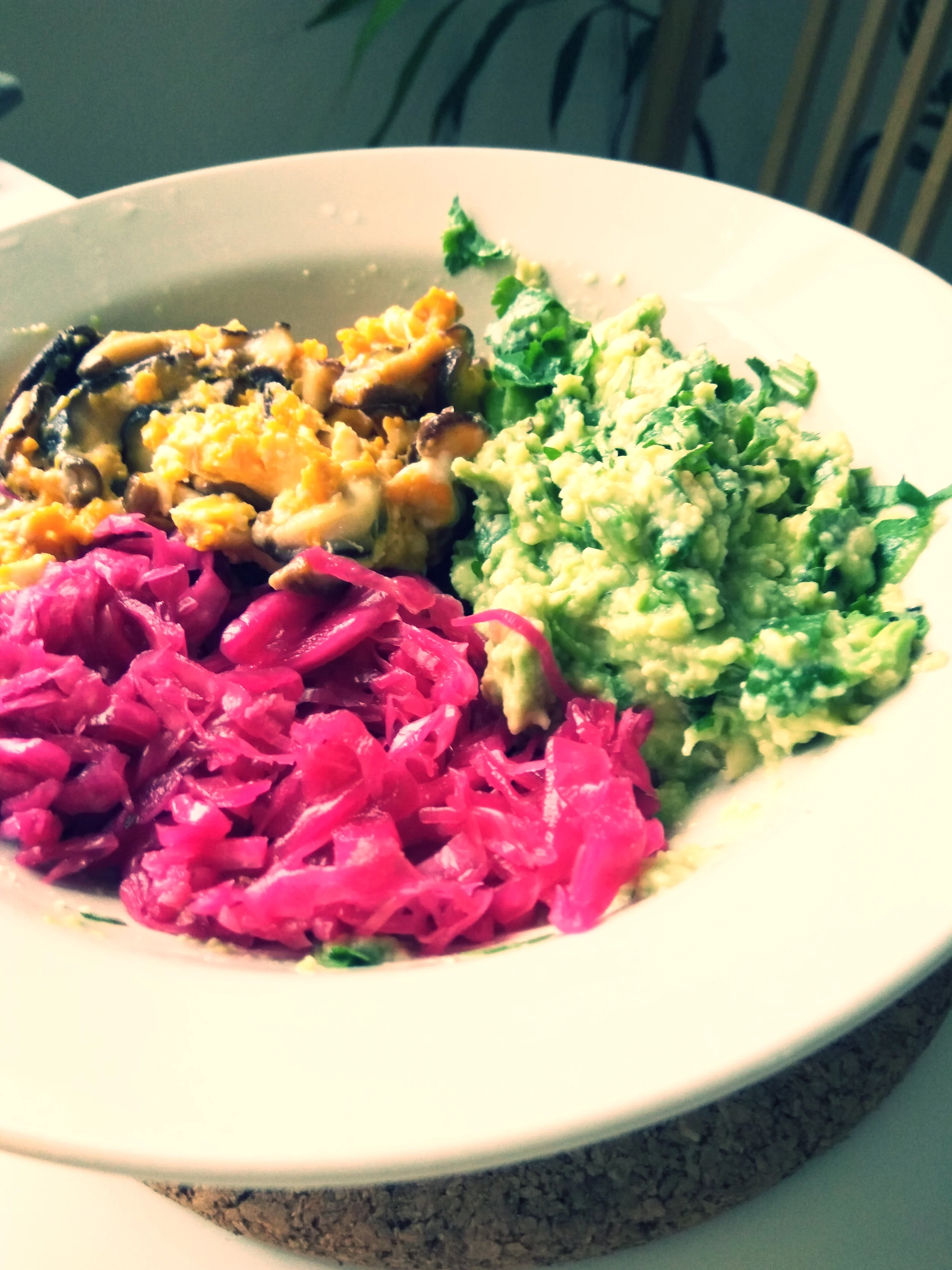 I encourage you to add homemade sauerkraut to any meal as a side dish - not only does it help to break down the protein and adds beneficial bacteria to your gut, but also it tastes great.
